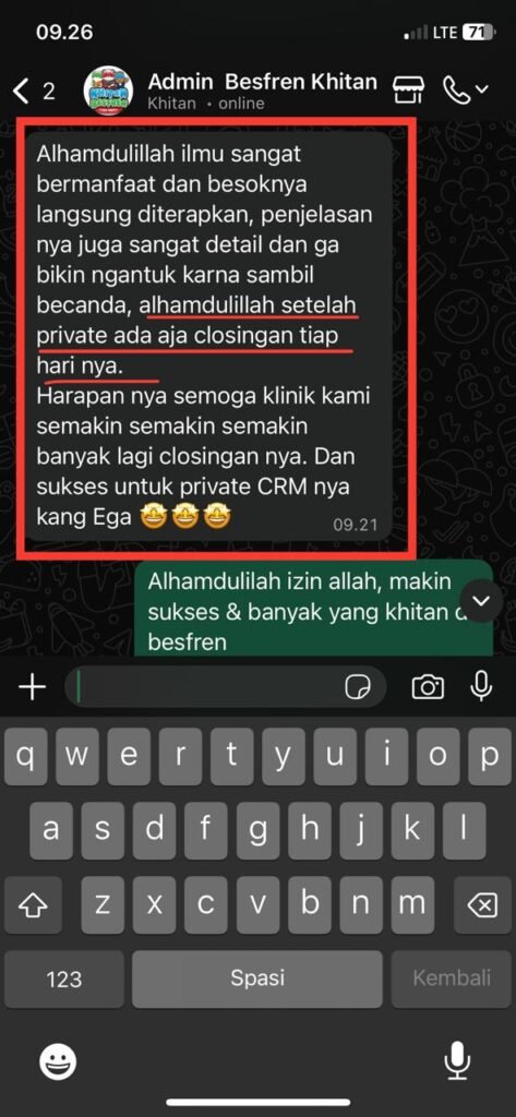 Testimoni nyata dari peserta yang berhasil meningkatkan respon cepat, sistem follow up lebih rapi, dan penjualan meningkat signifikan.