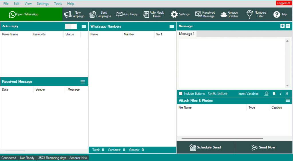 Software berbasis dekstop PC Windows yang dapat digunakan untuk mengirimkan pesan WhatsApp secara massal. Aplikasi ini mudah digunakan, dilengkapi dengan beragam fitur yang sangat powerful untuk kebutuhan WhatsApp Marketing tanpa batas.